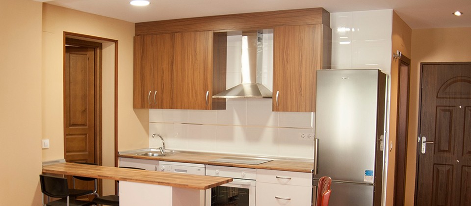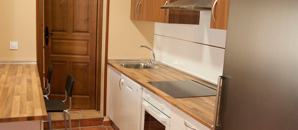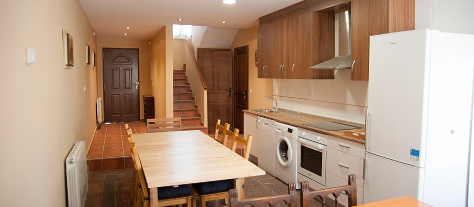 En «Casa Eresma», disponemos de dos cocinas, una en formato salón comedor cocina americana, en planta calle y acceso al patio, completamente equipada con lavavajillas, vitrocerámica, horno, microondas, frigorífico y menaje completo.